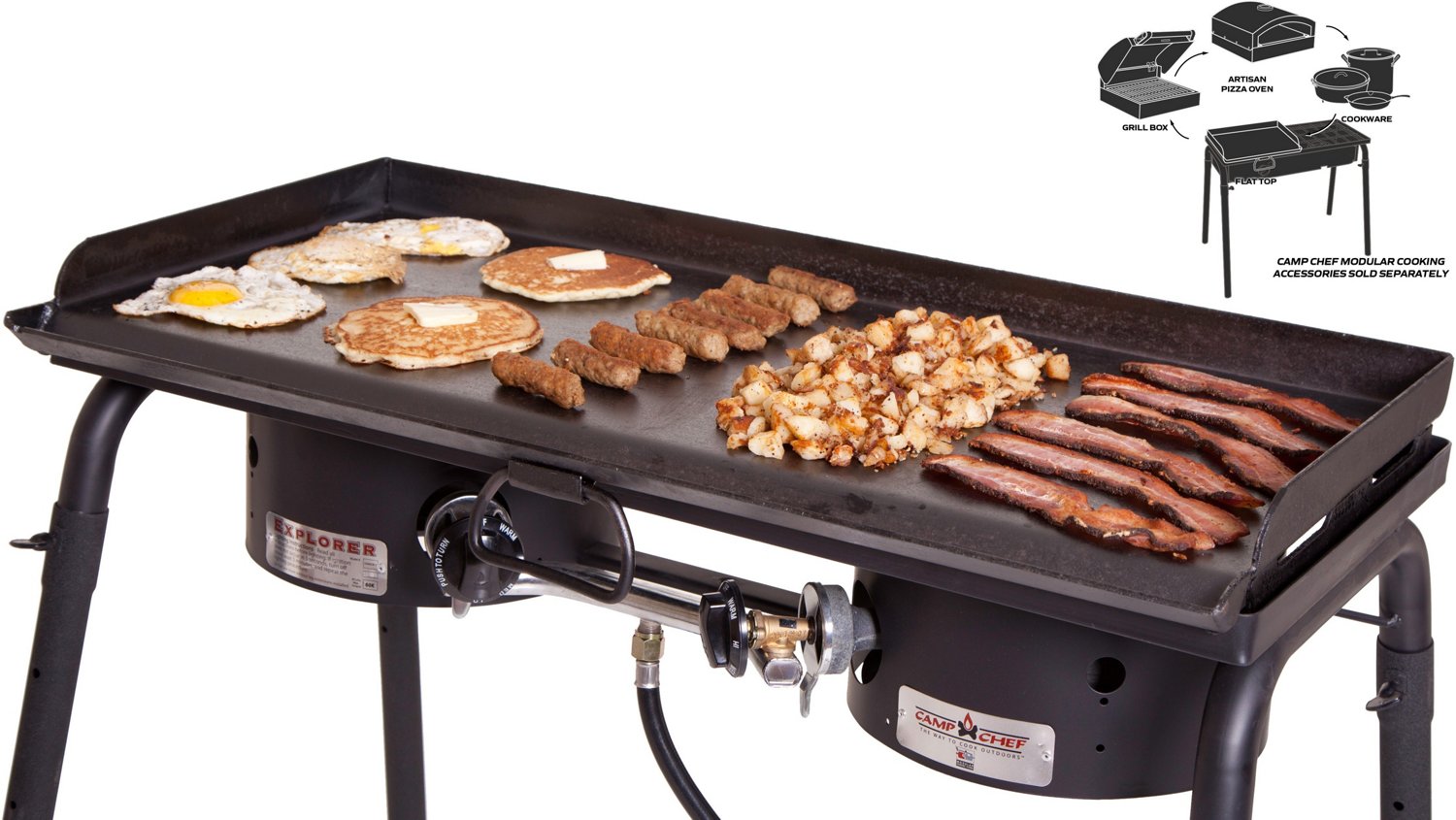 Camp Chef® Expedition Three Burner Stove with Griddle Cabela's Canada Camp Chef Pellet Grill With Griddle shop the flat top grill collection from camp chef. camp chef 36 in. using your existing side shelf holes, easily mount a sidekick to your pellet grill for propane powered cooking. Includes professional flat top griddle with ready to cook true seasoned. the sidekick is just that—your pellet grill’s powerful partner in cooking crime. Find portable. Camp Chef Pellet Grill With Griddle.